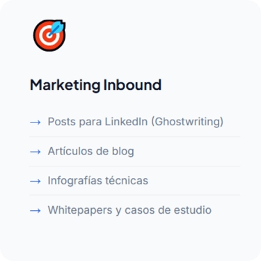 Software como Servicio requiere contenido técnico que muestre valor y facilite la venta. Entendemos métricas, ARR, churn y el lenguaje del sector.